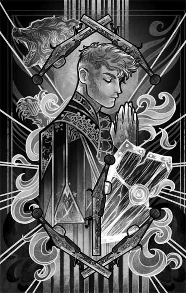 Я изучал его, пока он ковылял ко мне, по сломанной руке стекала кровь, забрызгивая сапоги. Он сильно изменился за годы, прошедшие с тех пор, когда я видел его в последний раз. Теперь ему уже под тридцать, и он стал более мускулистым, хотя двигался как всегда быстро. Он также добавил татуировок на свою эгиду: на скулах и выбритых висках теперь вились пылающие серебром побеги роз, а по щекам скатывались пламенеющие шипы и соцветья. На раненой руке перчатки не было, и на костяшках пальцев виднелось слово «В О Л Я», выгравированное серебром. Изумрудные глаза он обвел черным, но в белках я не заметил и следа красного. Он выглядел так, будто его настигли в чистом поле, без санктуса в венах. А взглянув на его пояс, я не увидел ни ножен, ни меча.