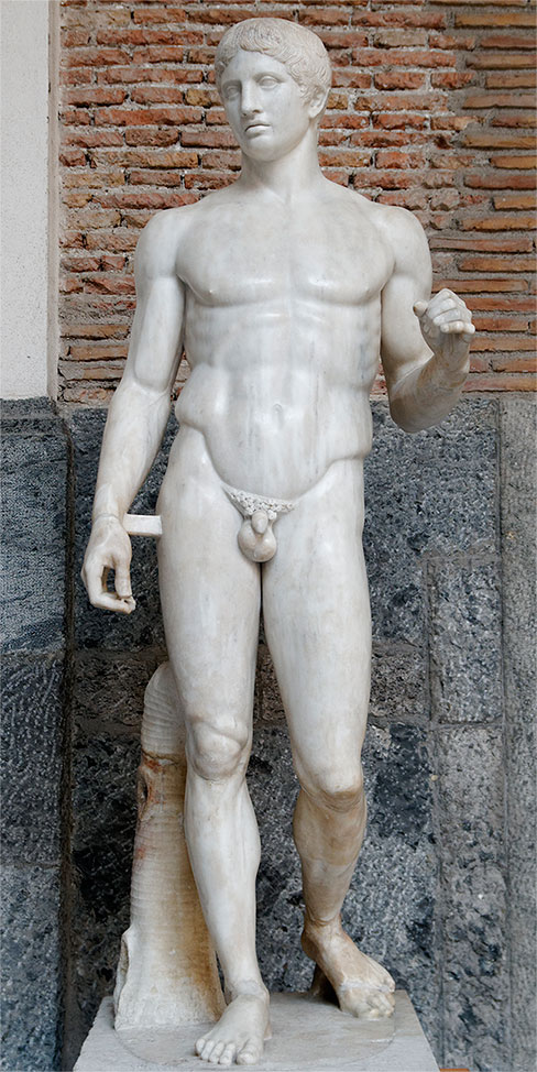 Рис. 1.8. «Дорифор» («Копьеносец»). Скульптор Поликлет. 450–440 гг. до н. э. (Римская копия. I век до н. э. – I век н. э. Национальный археологический музей Неаполя)[8]