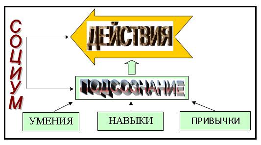– Подсознательные действия и поступки личность приобретает от природной и социальной среды обитания, но может по своему усмотрению изменить их самостоятельно или с помощью других представителей социума.