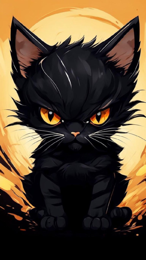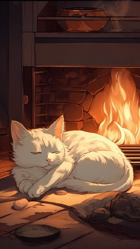Кошка посадила котёнка поближе к печке, а сама улеглась рядом. Чёрненький понял, что спектакля не будет. С недовольной мордочкой он удалился в залу, злобно шипя: