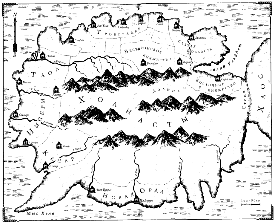 Спустившись по склону и выйдя на дорогу, он понял, где находится. Вестарон лежал в паре ходов на запад, а чуть восточнее находилась развилка. Одна дорога вела на север, к Троеградью, другая – на северо-восток, к переправе через Биронт и дальше к местам, где обитали благородные из Чистой Лиги…