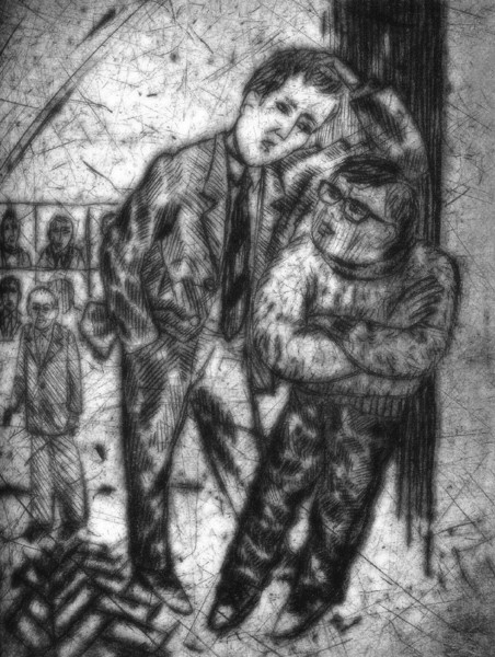 3Выйдя в фойе, Никитин увидел, наконец, своего друга-газетчика. В черных джинсах и старом горчичного цвета свитере Кнут стоял у окна и, облокотившись на подоконник, хмурясь и то и дело поправляя пальцем на носу толстые роговые очки, никого не замечая, читал какую-то книгу.