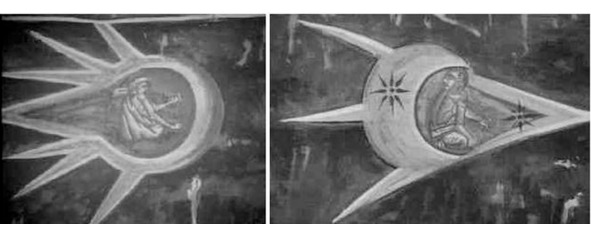 Журналисты провели сравнение с тремя первыми советскими спутниками Земли, но, если внимательно присмотреться к фрескам, с этим, пожалуй, они явно поспешили, желая, видимо, поддержать модную тему о космических пришельцах. Что же открылось нашим современникам в деталях древних изображений?