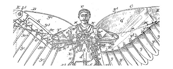 Давайте попробуем заменить все малопонятные слова и выражения из лексикона давнего английского журналиста на более приемлемые и понятные нам: «часовой механизм», например, заменим словом «двигатель» – так оно и есть! Из «кишок» крылья сделать нельзя, но возможно обтянуть каркас, склеенный из пластинок китового уса, тонкой пленкой, выделанной из кишок какого-нибудь животного. Этот материал получил в XVIII веке название «бодрюш» и употреблялся для изготовления воздушных шаров.