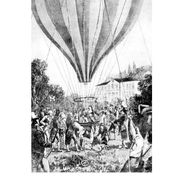Вот так летом 1783 года во Франции появились «воздухоносные шары» В монгольфьеры и шальеры. А уже осенью 19 сентября в Версале взмыл к солнцу аэростатический баллон с живыми существами в клетке: уткой, петухом и бараном, хотя рвался в полет человек – Пилатр де Розье.
