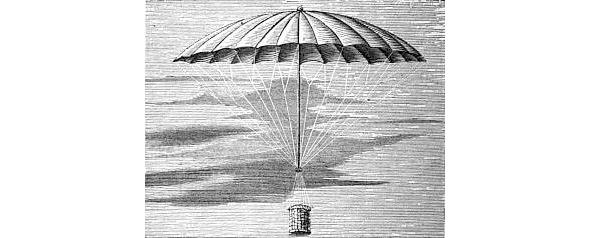 Это свершилось 22 октября 1797 года в парижском парке Монсо. В пять часов дня под взглядами многочисленной толпы нетерпеливых соотечественников воздушный шар поднялся в небо. Вместо обычной гондолы к обручу баллона был прикреплен тонким манильским канатом огромный свиток шелковой ткани, а под ним в маленькой корзине восседал Жак Гарнерен.