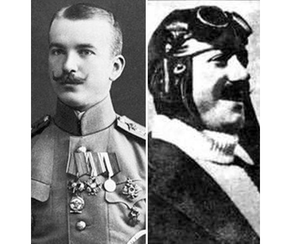(слева-направо) 1. Русский лётчик Петр Николаевич Нестеров 2. Французский лётчик Адольф Пегу.
