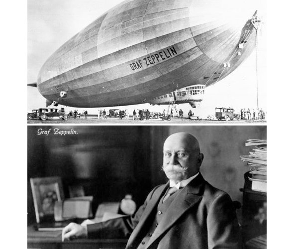 Дирижабль графа Цеппелина и сам Фердинанд фон Цеппелин.