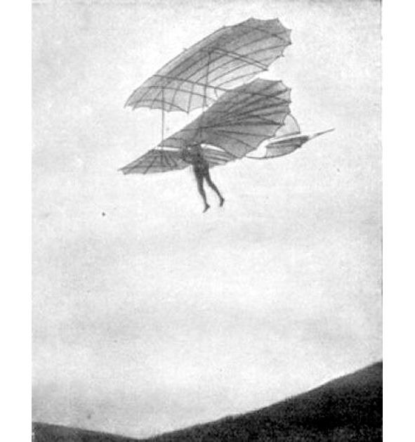 В 1891 году крылья из ивовых прутьев и полотна испытал Отто, бросившись с возвышенности против ветра.