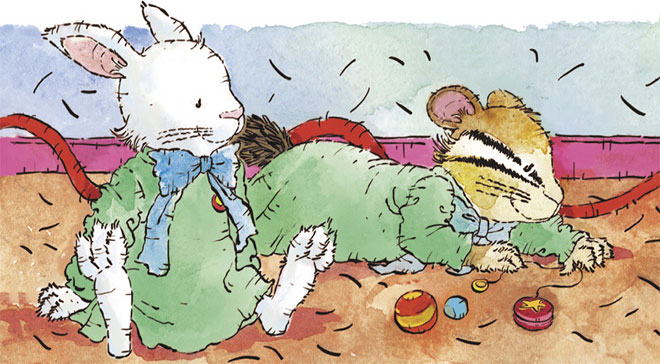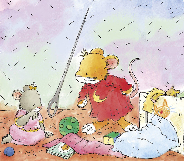 – Даже поиграть не смог… – ворчит мышонок себе под нос и вдруг замечает, что сестрёнка Лили разбросала все его игрушки.
