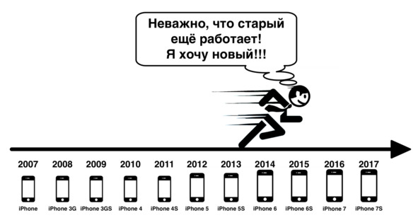 Если организация закупает нечто для собственных нужд, например, завод – станки, то оборудование будут эксплуатироваться настолько долго, насколько возможно и экономически целесообразно. На некоторых предприятиях до недавнего времени стояли сверлильные и токарные станки, вывезенные из Германии в 1940-е годы. Они работали, и не было никакого смысла заменять их новыми. На производственных предприятиях никому не приходит в голову менять дорогостоящее оборудование только потому, что вышла следующая модель. Да, инновации, конечно же, внедряются, но значительно медленнее, чем в случае с C-клиентом, и совершенно по другим причинам.