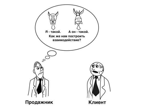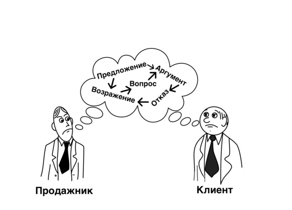 Давайте представим, что некий менеджер Вася (отныне наш постоянный и любимый герой) появляется пред ясными очами потенциального клиента. Если следовать классической теории, то все, что между ними происходит – это диалог, обмен информацией, бла-бла-бла…
