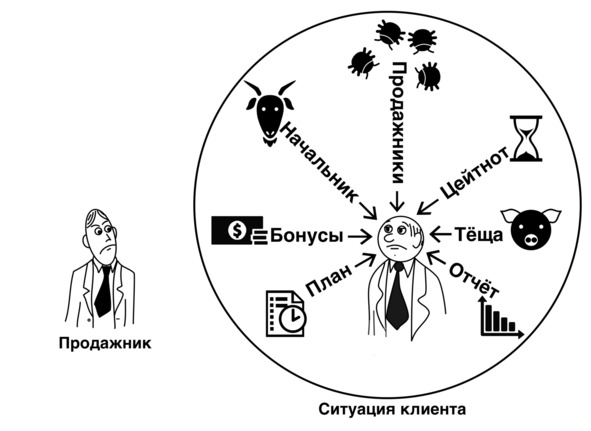 Итак, когда наш менеджер Вася появляется перед клиентом, он находится внутри собственной ситуации.