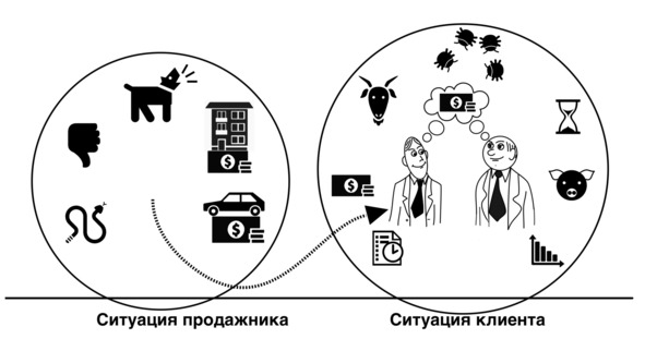 И еще. Изучение ситуации клиента – это не выявление потребностей. Это прояснение той реальности, в которой клиент существует и сквозь призму которой будет воспринимать ваше предложение.