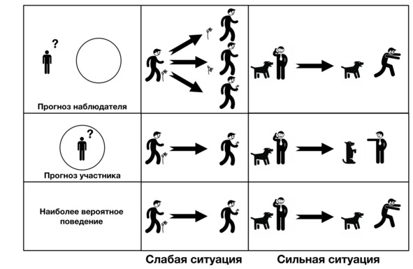 При таком подходе «ситуация» – ключевое понятие. Ни что иное как ситуация способно заставить совершенно разных людей при определенных обстоятельствах вести себя одинаково, говоря одни и те же слова.