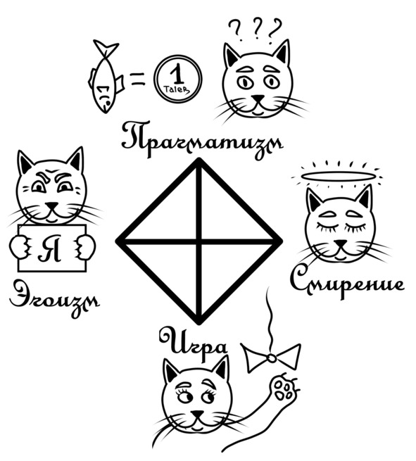 Я решил, что с эгоизмом, прагматизмом и игрой у меня нет ни малейших сложностей. Можно сказать, что я живое, нахальное и пушистое воплощение этих принципов. А вот со смирением все значительно хуже. Нифига я не смиренное существо. Ну ни на грамм.