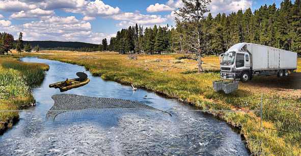 Вода рывками оживала, то тут то там были видны косяки рыб, протока начала бурлить от тысяч рыбин попавшие в узкую и неглубокую реку Гили. Наиболее крупные и быстрые рыбины приплыли первые, их косяки стали огибать трал и горловину, но сильнейший напор огромной массы направил почти весь поток трепыхающейся рыбы в сетчатый мешок. Воздух вокруг наполнился миллиардами комаров, от которых спасали лишь сетчатые маски на лице, гул их крыльев напоминал взлёт реактивного самолёта.