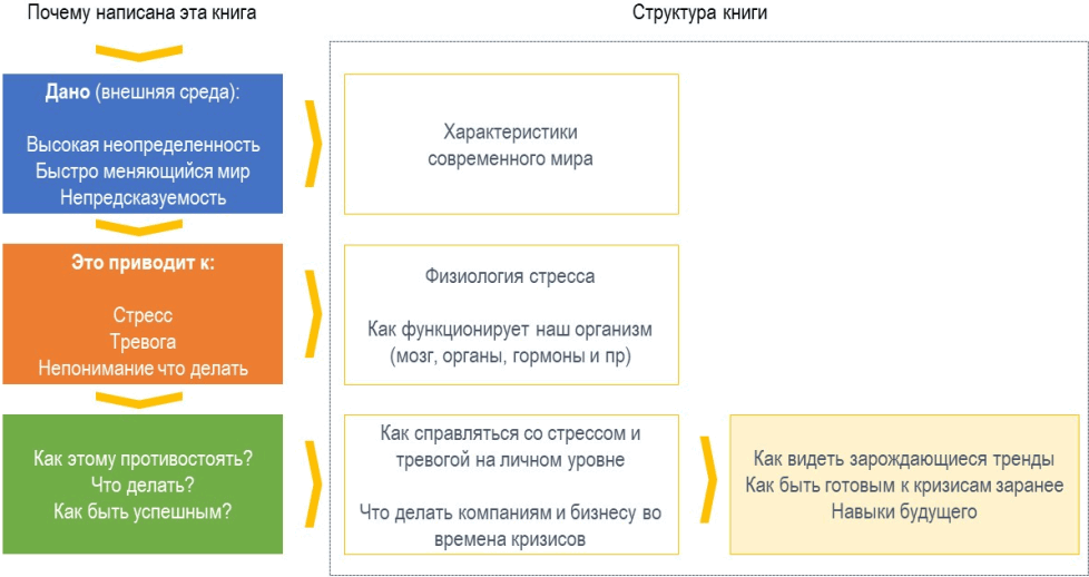 То есть можно рассматривать эту книгу как сборник тактических решений как поступать в кризисных ситуациях (как справляться со стрессом, тревогой и изменениями), а также и стратегических механизмов, которые позволяют выстраивать такую систему, при которой количество потрясений в личной жизни из-за внешних изменений будет стремиться к минимальному, потому что вы заранее будете готовы к ним. По крайней мере, такой была цель написания, и дайте мне знать в обратной связи, была ли эта книга вам хоть немного полезной.