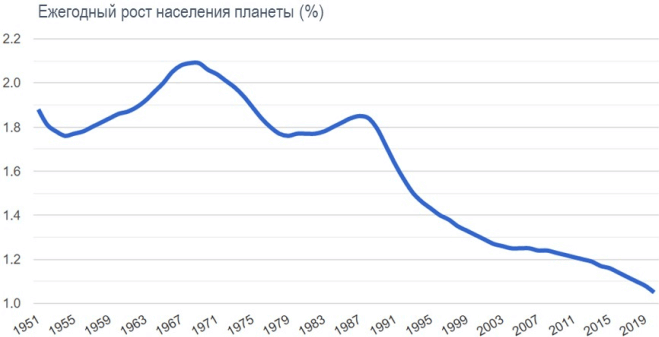 Однако, по данным, которые приводит ООН, рост численности населения в последние годы все же идёт более плавно и с каждым годом всё медленнее. Если с 1950–1987 годы, ежегодный рост варьировался в пределах 1,75-2,1 %, то начиная с конца 1980-х годов ежегодный рост продолжает снижаться, и за последние 30 лет он снизился с 1,60 % до 1,05 % в год (прирост примерно в 81 миллион человек в год). Это означает, что мы постепенно выходим на своеобразное плато по росту численности населения, и ученые прогнозируют, что отметку в 10 миллиардов наша планета пересечет примерно в 2050 году.