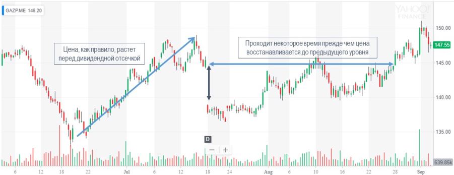 Если вы берете акции, чтобы получить дивиденды, то вы должны быть готовы, что после даты закрытия реестра, они наверняка просядут в цене, и вам придется подождать некоторое время, пока их цена восстановится. Для некоторых компаний это может быть пару недель, а для некоторых даже несколько месяцев. Поэтому необходимо быть достаточно осторожными и посмотреть как акция проседала в предыдущие периоды выплаты дивидендов.