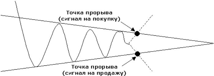 В симметричном треугольнике амплитуда колебаний может привести как к прорыву движения цены вверх, так и вниз.