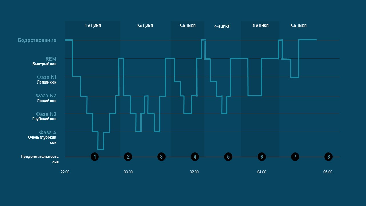 Наши циклы занимают около 90 минут каждый, и в среднем во время нашего сна проходит от 4 до 6 циклов за ночь.