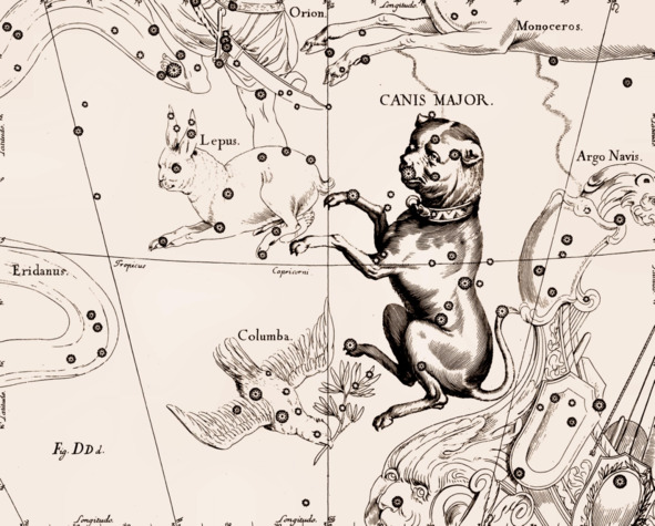 Все персонажи, изображённые на звёздном небе, принадлежат XIV – XV векам, либо добавлены Яном Гевелием в XVII веке. Перед тем, как взойти на небо, поэт начал перечислять созвездия звёздного неба, встречающиеся ему на пути. В первой песне Ада он перечислил созвездия, – Рысь, Лев, Волк, Большой Пёс, Геркулес, Северная Корона или Корона Ариадны.