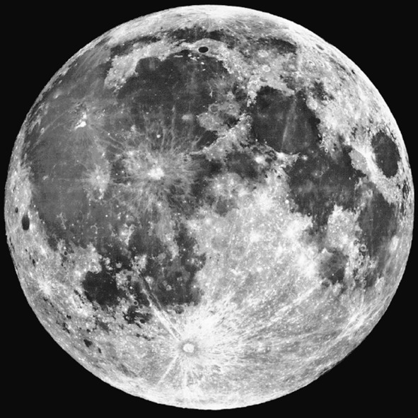 Р. II.1 Вид полной Луны в телескоп, снабженный светофильтрами. Луна – единственное небесное тело, неоднородная поверхность которого видна невооруженным глазом. Народная фантазия видит на Луне фигурку Каина, несущего хворост. Плутарх, рассуждая о природе пятен на поверхности Луны, объясняет их разной «скважностью» планеты, не подразумевая, что она является небесным твёрдым телом. Считается, что Луна – «скважина» на хрустальной сфере, через которую к нам доходит слабый свет Эмпирея.
