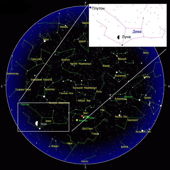 А. IV.3 Вид на звёздное небо 18 января 1743 года. «Огонь, под полушарьем тьмы горящий» – Луна в последней четверти в созвездии Дева.