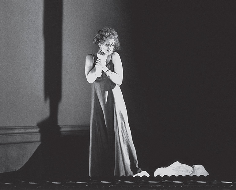 В предпоследней картине на сцене стояла перекошенная кровать с косой спинкой, её освещала лампочка на кривом проводе, без абажура – ну ни дать ни взять какая-то средней руки больничная палата! Олден настаивал, чтобы в этой сцене Ренато будет меня так садистски раздевать: расстёгивать молнию, снимать одну лямку, вторую… «Зачем?» – спрашиваю. «Ну, это в некотором роде сцена насилия!»