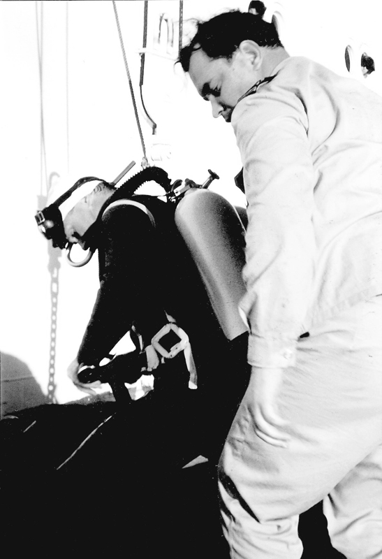 «Нужно спокойно смотреть, что делает твой напарник и небрежно повторять и все будет ОК», – думал я, раскладывая на палубе полученное от ФАО подводное снаряжение. Но голова шла кругом. Уж очень это снаряжение было классным. Часы подводные, манометры, глубиномеры, датчики воздуха, указатели содержания азота, костюм пловца, подводный нож, грузы, ремни. Акваланги, наконец. Белые, сверкающие нержавейкой баллоны – было от чего растеряться. Подошел директор и долго смотрел, как я раскладываю всю эту подводную технику.