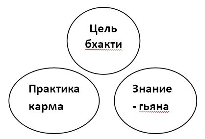 Бхакти йога как баланс мотива, теории и практики. Согласно Ведам, религия как процесс содержит теорию – духовное знание, которое называется на санскрите гьяна; и практику – религиозные правила и ритуалы, называемые на санскрите карма. Соответственно на санскрите три части религии выглядят следующим образом: