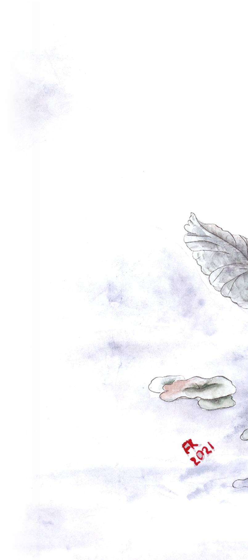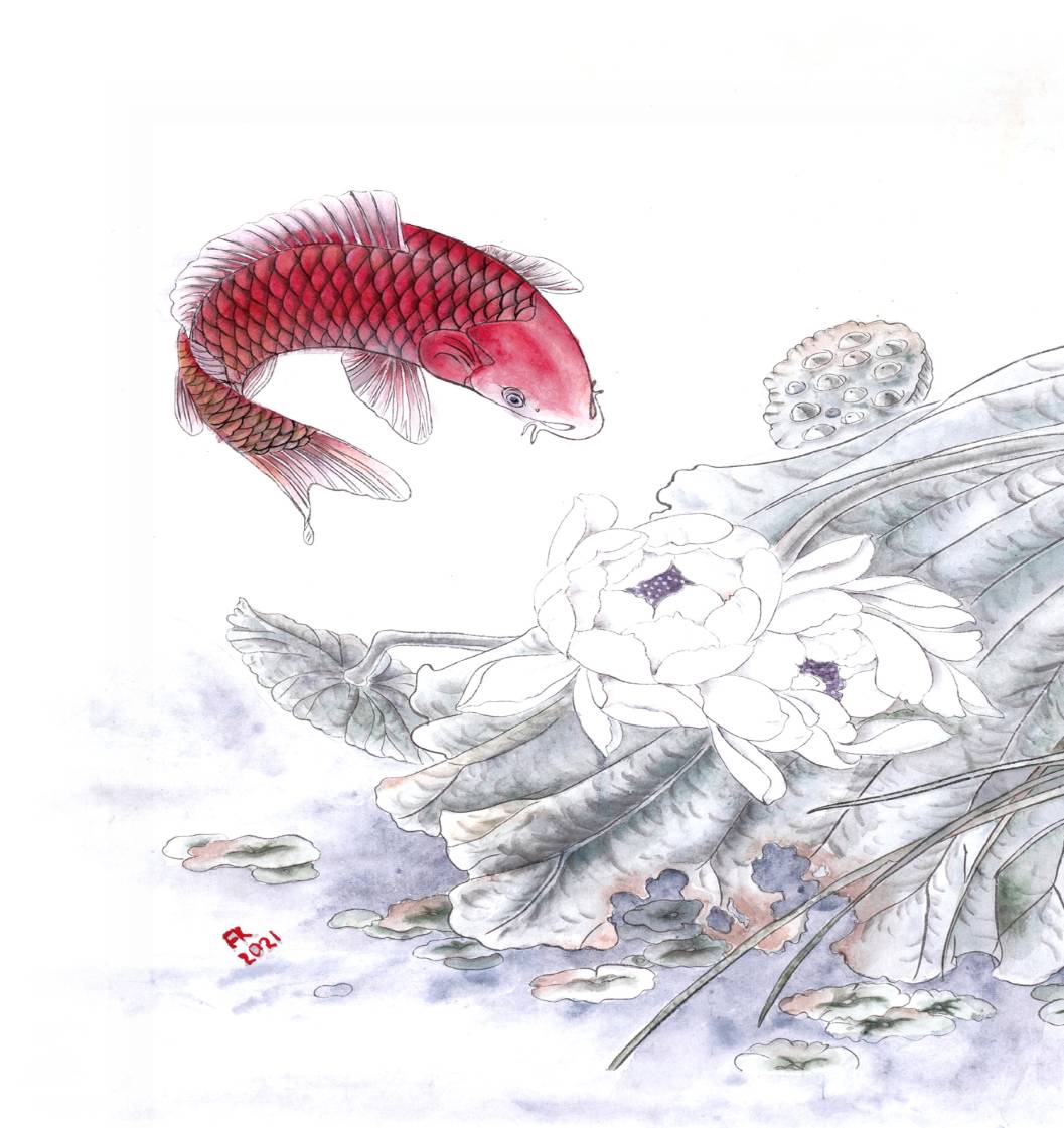 Он наблюдал за рыбами, подводным царством и лотосами, и понял, что, хотя пруд очень красив, ему здесь не место. Отряхнувшись, немного отдохнув и набравшись сил, он продолжил своё путешествие. Обойдя пруд, он увидел скалистый холм и красные огонёчки. Огонёчки оказались ни чем иным как манящими, чарующими красными