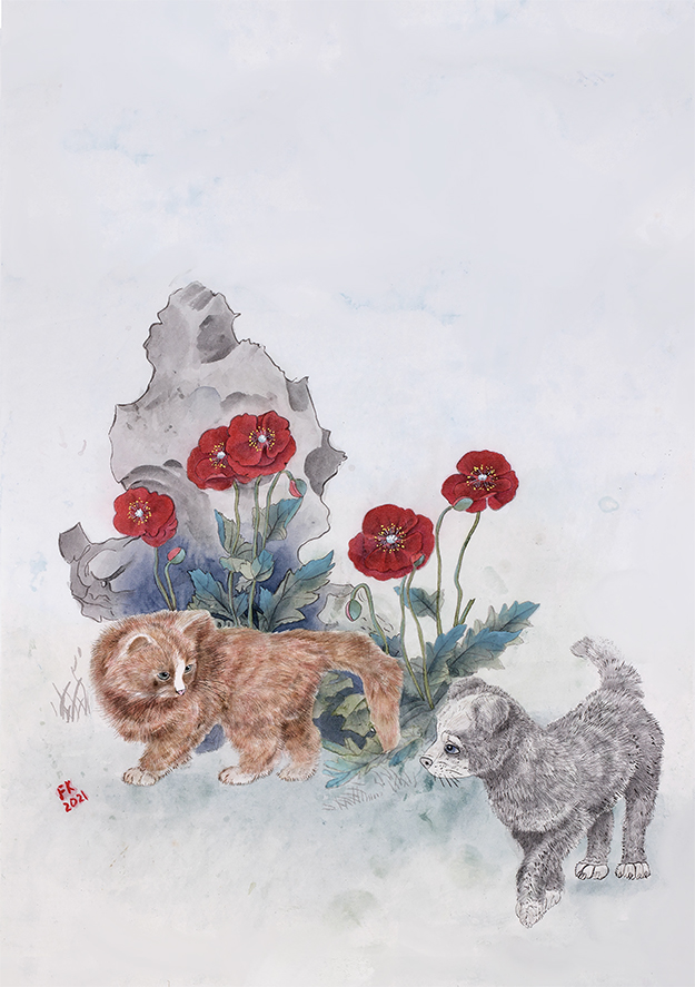 Неожиданно из-за скалистого холма появился рыжий кот. Он был вежлив и учтив. Он спросил Бима, что он ищет на его территории. Бим был удивлён тем, что эта местность принадлежит коту. «Неужели, цветы тоже принадлежат ему?» – подумал Бим.