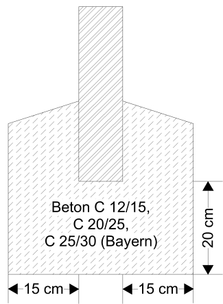 Der Einbau von Randeinfassungen {Randeinfassungen} ist in der ATV DIN 18318 geregelt. Die Einfassungen sind auf ein mind. 20 cm dickes Fundament der Betonklasse C12/15 in Schalung zu setzen und mit seitlichen Rückenstützen der Betonklasse C12/15 zu versehen (Nennbreite bis 80mm: mind. 10 cm, Nennbreite über 80 mm: mind. 15 cm dicke Rückenstützen). Fundament und Rückenstütze sind zu verdichten. Die Rückenstütze ist in Schalung auszuführen. Die Druckfestigkeit des Betons muss am fertigen Bauteil mindestens 8,0 N/mm² betragen, bei überfahrbaren Bord- und Einfassungssteinen 15,0 N/mm². Besonders hinzuweisen ist, dass erst durch Betonklassen von C 20/25 bzw. C25/30 (in Bayern per Runderlass vorgeschrieben) die entsprechende Druckfestigkeit erreicht wird.