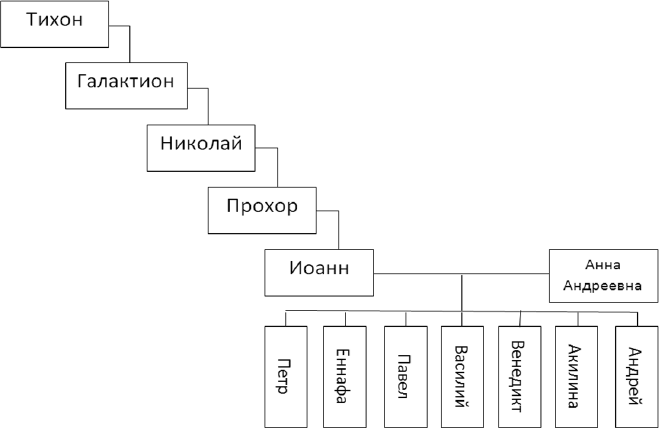 * * *Нет сведений, позволяющих понять причину, почему Иоанн Прохорович не получил, как его старший брат Николай, полного духовного образования и не стал священником. Быть может, «по малоуспешности», а вероятнее всего, отец его находился в материальном затруднении и не мог регулярно платить за обучение всех детей, что случалось довольно часто.