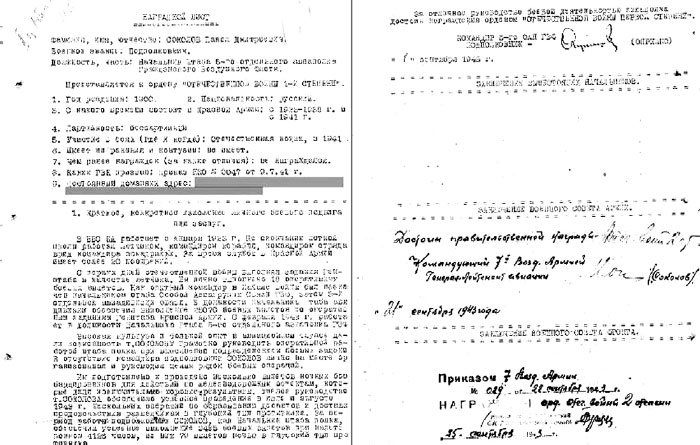 Наградной лист Соколова П.Д.