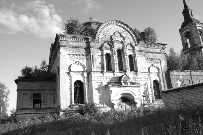 Первое, что бросается в глаза, – кровля, поросшая лесом. Упавший сверху крест стоит, прислоненным к запертым дверям. Вокруг нет ни следов кладбища, ни ограды. Как известно, за алтарем храма хоронили священнослужителей и их ближайших сродников. Поэтому есть основания предполагать, что Иоанн, Димитрий, Александр, Мария Владимировна, а может быть, и сам Павел Иоаннович покоились в этой земле, пока не пришло чье-то прогрессивное революционное распоряжение об уничтожении кладбища путем снятия слоя земли вместе с крестами и надгробиями. Эти самые надгробия укладывались в основание новой дороги.
