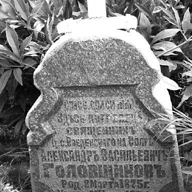 Здесь погребен священник ц. с. Введенскаго на Волге Александр Васильевич Головщиков. Род. 8 марта 1875 г. Умер 24 июля 1909 г.