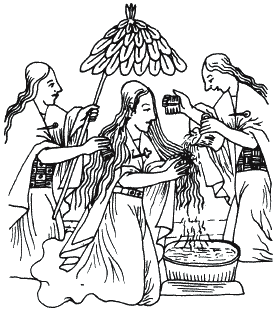 Рис. 6. Туалет инкской женщины: приближенные дамы моют голову койе