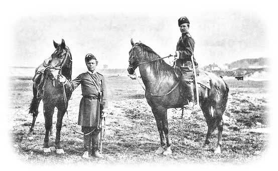 Казаки, верные слуги царя против внешних и внутренних врагов, формировали привилегированное сословие: они должны были служить в армии порядка двадцати лет[9], но в качестве компенсации получали земельные и налоговые привилегии. Они объединялись в одиннадцать сообществ (войск), среди которых Кубанское и Донское войска были наиболее значительными. Уровень жизни казаков был намного выше, чем крестьянский; они были сплочены и, что, возможно, более важно, гордились своим образом жизни.