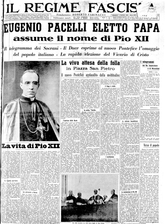 Фашистская пресса с глубоким одобрением высказалась о событии. Corriere della Sera, ведущая газета страны, посвятила выборам три первые полосы, причем в статье на первой странице провозглашалось: «Фашистская Италия взирает на нового папу с уверенностью и симпатией». На другой день Роберто Фариначчи, один из виднейших членов Большого фашистского совета (помимо прочего, в этом совете он активнее всех выступал за союз Италии с нацистской Германией), опубликовал ликующую редакционную статью в своей собственной газете Il Regime Fascista[66].