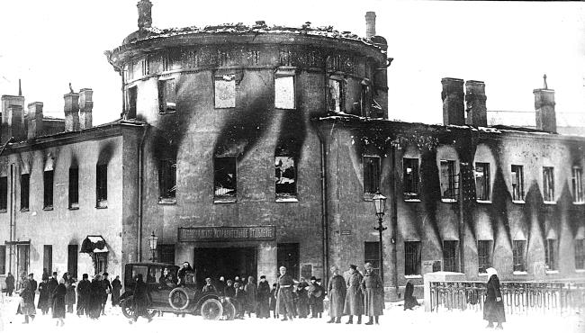 Во все эти первые дни революции я не выходил на улицу и потому ни разу не видел восставшего города. Лишь однажды, в ночь на 2 марта, я поспешил домой за несколько часов до рассвета. Я видел патрули на углах и возбужденные группы людей, которые, по-видимому, не спали всю ночь, сторожевые бивуаки вокруг Думы и горящее здание Департамента полиции, куда меня однажды привезли из тюрьмы для допроса.