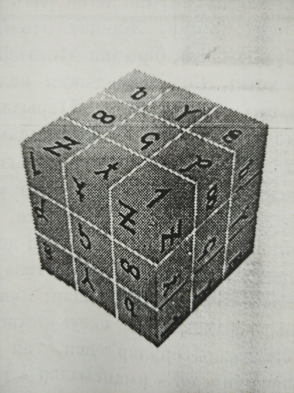В каждый из девяти маленьких квадратов, из которых состоит большой квадрат вписана цифра (число) от «одного» до «девяти», включая «девять». Начертания (или форма) чисел также необычны: их следует, как и квадраты распознать и раскрыть с метафизической точки зрения.