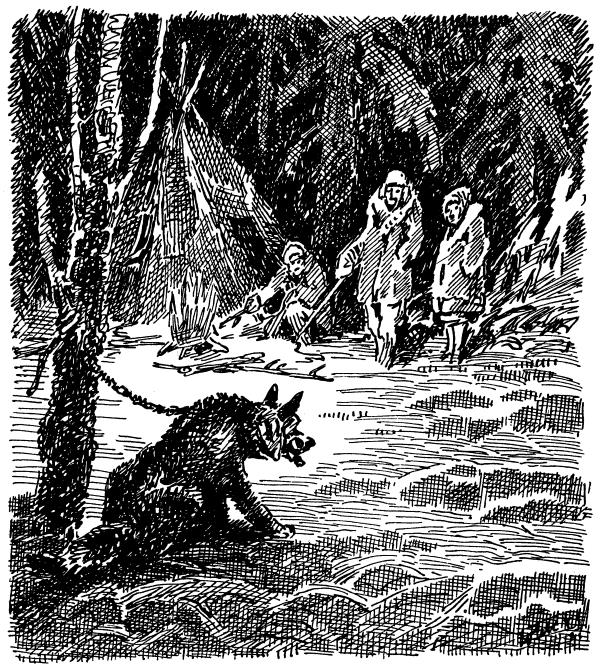 Казан лег, положив голову на передние лапы и повернувшись носом к теплым еще углям. Он не отрывал глаз от палатки, он был начеку. Как только поднимутся хозяева, он немедленно скроется в лесу. Но от серого пепла на месте костра шло тепло, и веки Казана стали смыкаться. Несколько раз он заставлял себя проснуться, но вот в последний раз веки его, едва приоткрывшись, вновь тяжело опустились.