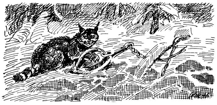 Казан и Серая Волчица в это время находились на расстоянии четверти мили от бурелома; они услыхали, как звенела стальная цепь, когда рысь пыталась вырваться на свободу. Десять минут спустя они уже стояли возле завала, у самого входа.