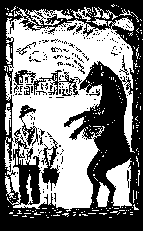 И, не дожидаясь ответа, мальчик ринулся в кухню, принес сахарницу и стал выкладывать сахар на ладонь, один кусочек за другим. Таким образом вороной конь сожрал примерно полфунта. Затем вздохнул с облегчением и сказал: