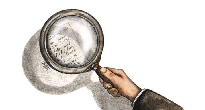 Прошло немало времени, прежде чем они придумали, как им заниматься. Кроме учебников и тетрадей для занятий понадобились стремянка с пятью перекладинами и сильная лупа. Перед тем как начать читать, Максик забирался на верхнюю ступеньку, потому что буквы были слишком велики для него. Лишь с верхней перекладины он мог обозревать всю страницу. К уроку письма он готовился совсем по-другому. Максик садился за свою крошечную парту. Крошечная парта стояла на огромном столе. А профессор, сидя за столом, в лупу разглядывал каракули Максика. Лупа в семь раз увеличивала написанное – только так профессору удавалось разглядеть слова и буковки. Без лупы и он, и официант, и горничная приняли бы их за чернильные брызги или за мушиные следы. Но в лупу было ясно видно, что это буквы, да к тому же красиво написанные.