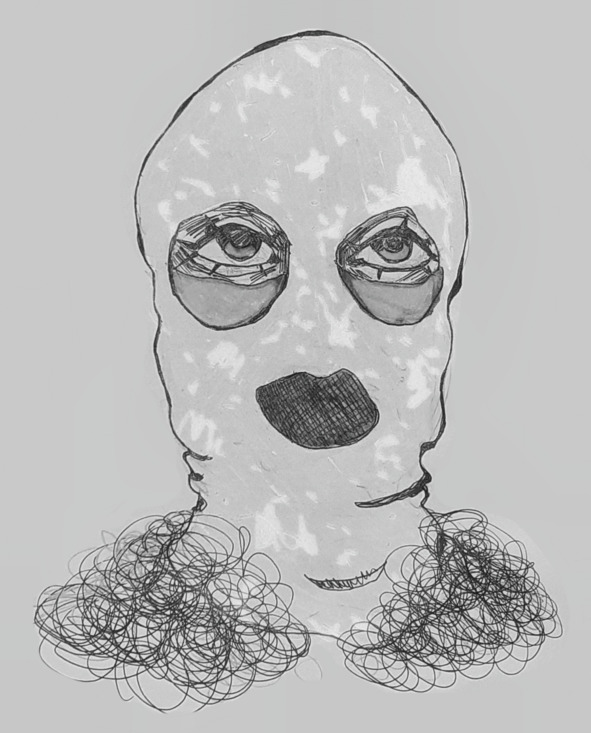 Вдруг, взгляд упал на инородный предмет на кровати. На голом матрасе лежала желтая маска, источник странного запаха железа, мускуса и чего-то еще, которая сама легла мне в руки. Она напоминала ту, которую носили во время боев дамы, желавшие походить на мужчин – чёрные губы, синие круги возле глаз и красные капли, будто крови, по всей площади.