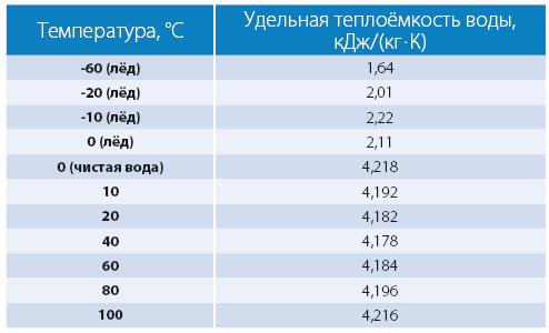 Помимо большой удельной теплоёмкости, вода также имеет большие значения удельной теплоты плавления (333,55 кДж/кг при 0 °C) и парообразования (2250 кДж/кг).